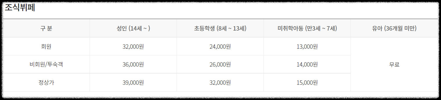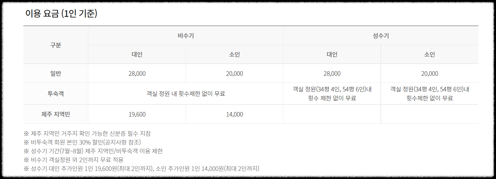 회원/비회원, 투숙객으로 요금확인해 주시길 바랍니다.