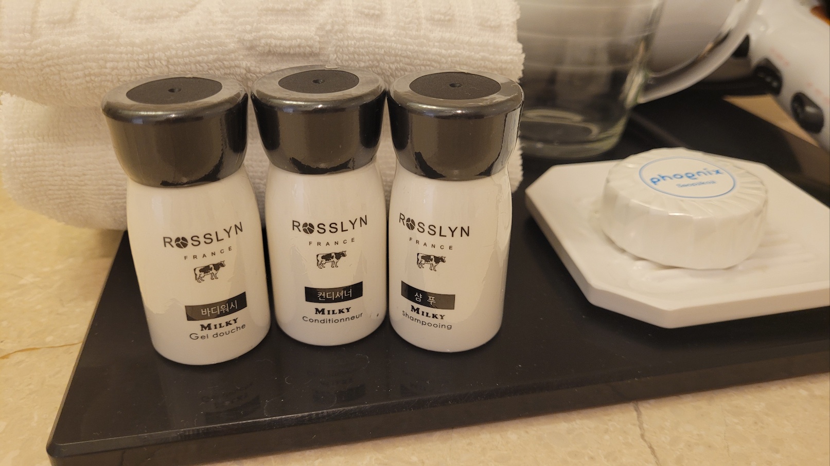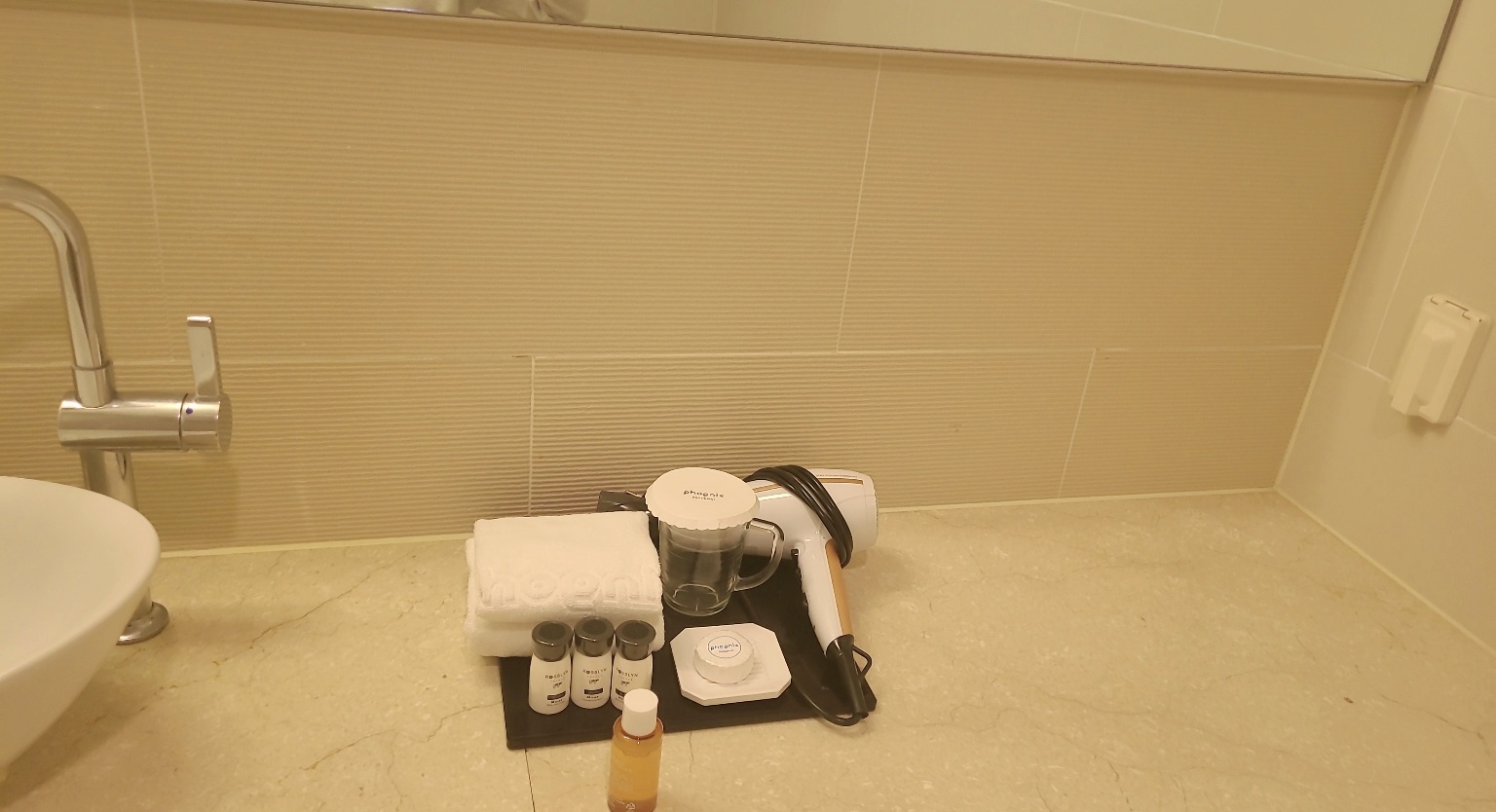 어메니티, 드라이기, 비누, 넉넉한 수건까지 준비되어 있어요