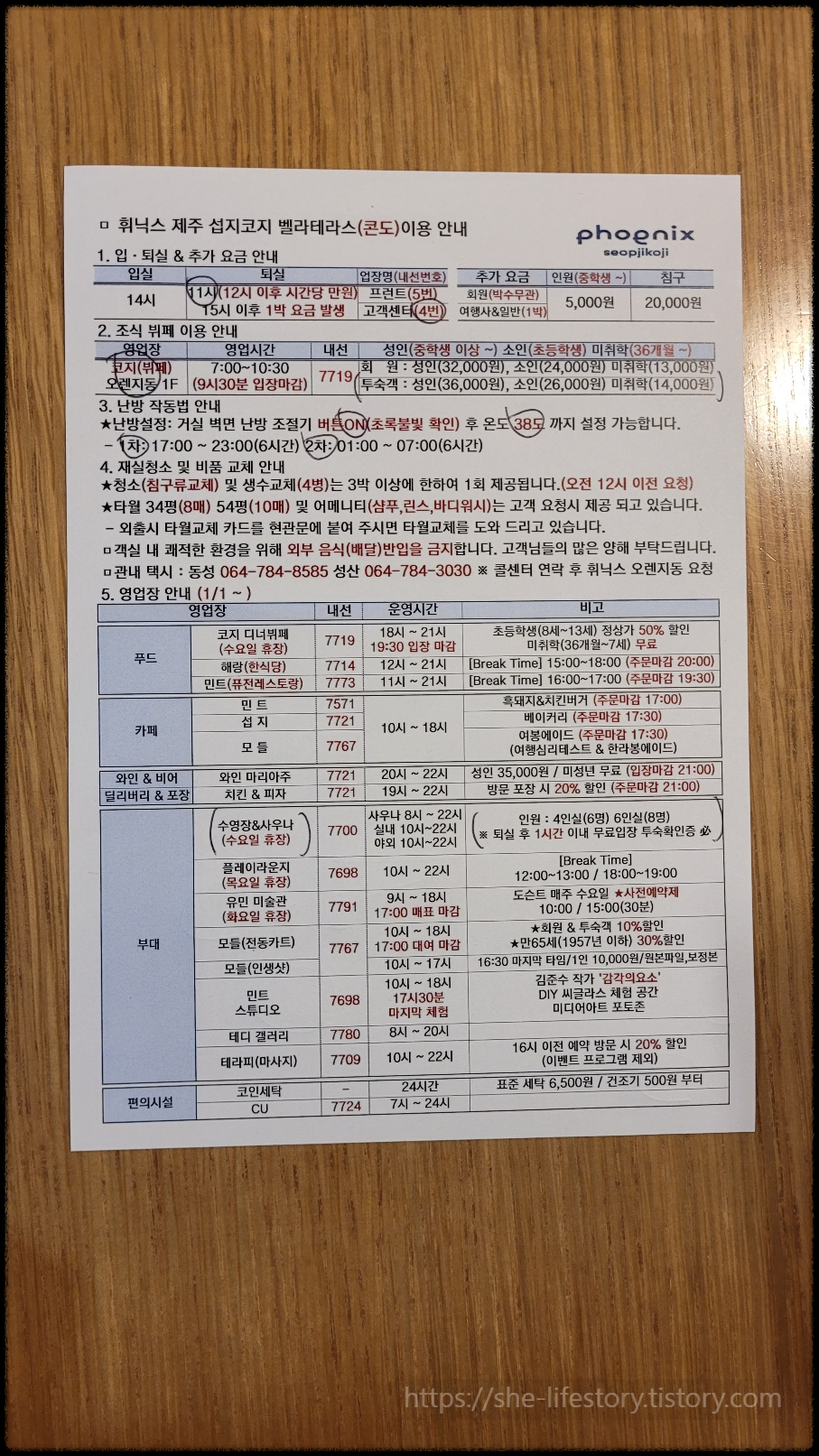 로비에서 체크인을 하게 되면 이용 안내표를 같이 주신다.