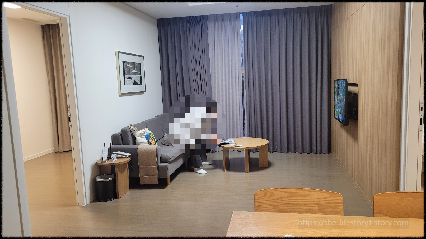 우리가 묵었던 블루동 로얄 더블 온돌룸 내부 모습입니다.
