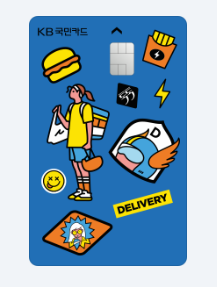배달앱 할인카드 신용카드 중에서 가장 할인율이 많은 톡톡D카드입니다. 생각해 보면 신용카드로 식비를 가장 많이 사용하고 있기 때문에 배달이용을 많이 하시는 분들께 정말 좋은 카드라고 말씀드릴 수 있습니다. 배달의 민족, 요기요, 쿠팡이츠, 마켓컬리에서 무려 50%까지 할인이 되는 국민카드입니다. 또 다른 혜택으로는 온라인 간편 결제는 월 3천 원 할인 한도, 편의점 5%, 대중교통 5%까지 할인받을 수 있습니다.